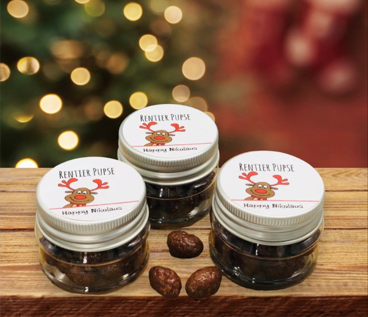 Wunderschöne Gastgeschenke zu Weihnachten, Rentierpupse zum Essen und Tischdekoration in einem.