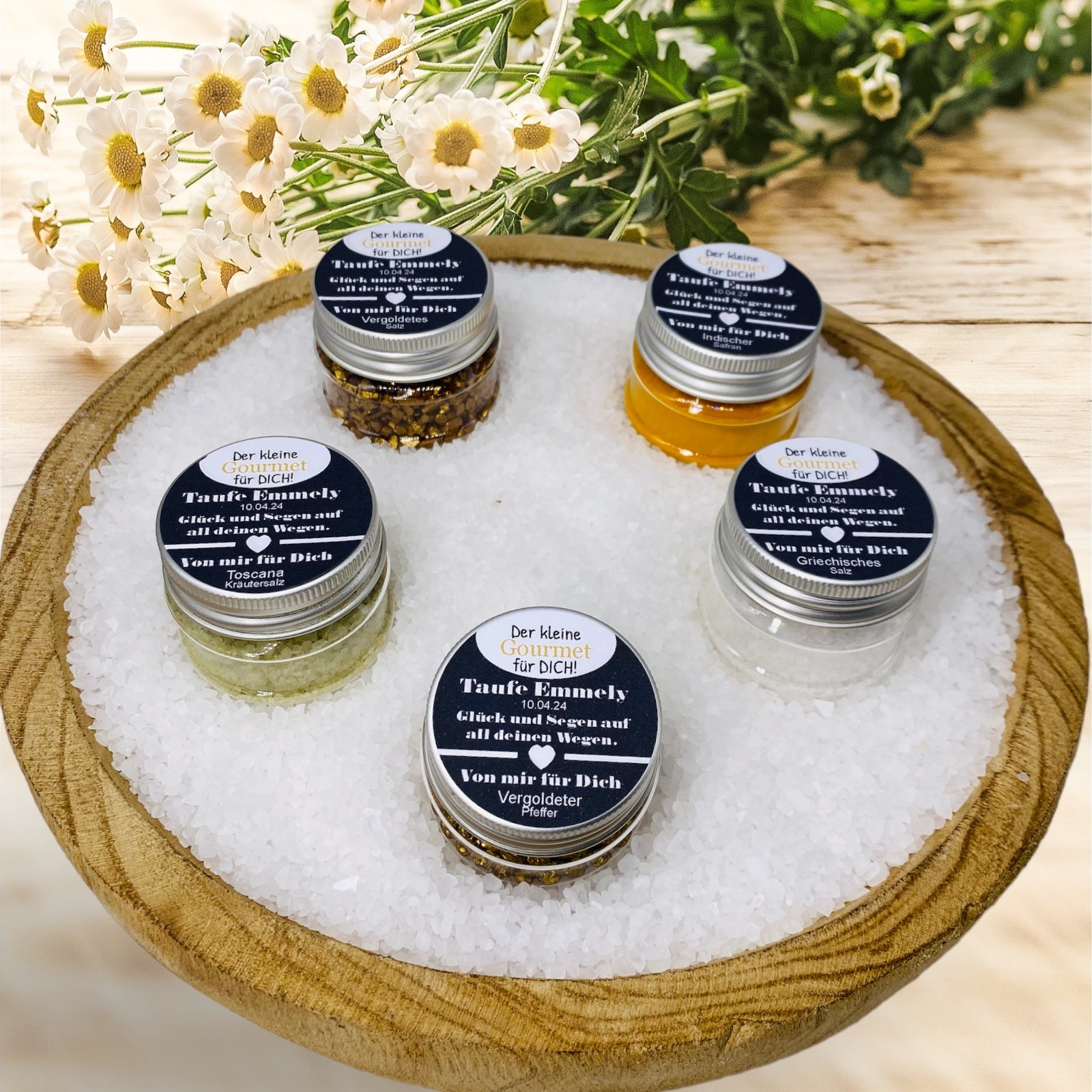 Ein Gastgeschenk, das die Taufe mit feinsten Gewürzen und persönlichen Akzenten unvergesslich macht.