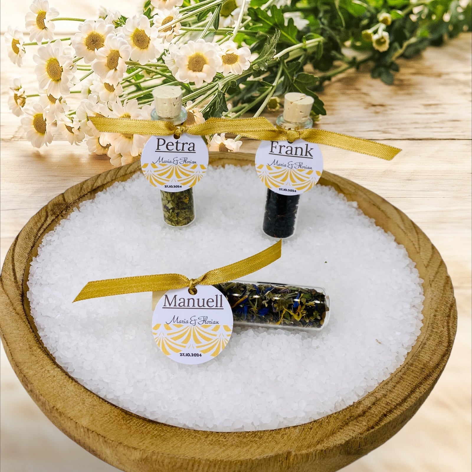 Fordyb dig i en verden af ​​elegance og smagsoplevelser med vores udsøgte gæstegave i form af et stilfuldt skibsglas. Perfekt til bryllupper og særlige lejligheder, dette lille mesterværk indeholder en række udsøgte indhold såsom forskellige teer, luksuriøse badesalte eller guldbelagte salt- og peberblandinger.
