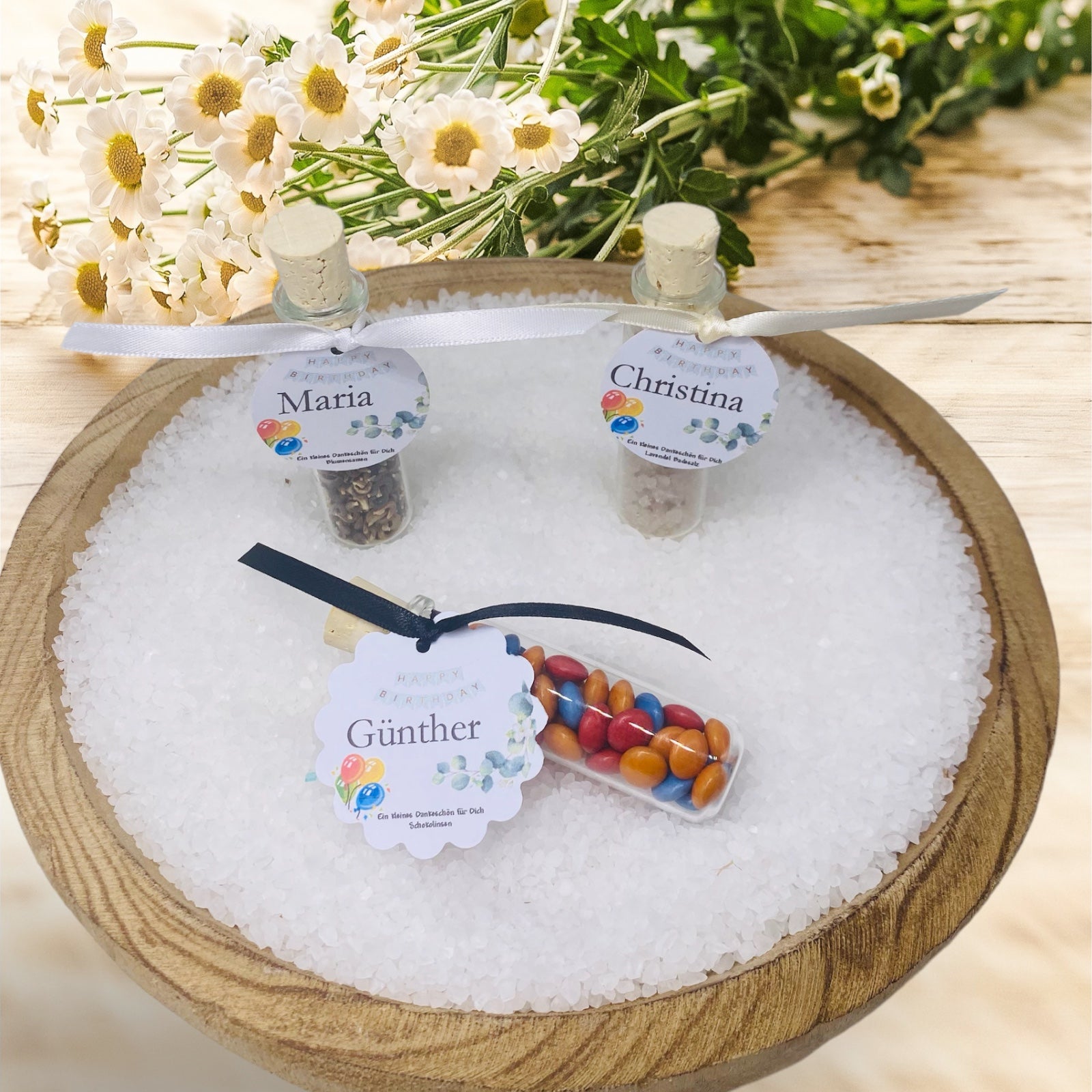 Medtag venligst følgende i din indkøbskurv: påfyldning, gæsteliste. Vi kan også printe "Dejligt at du er her" i stedet for gæstens navn! Du skal blot give os besked i din indkøbskurv. Hvis du har en fil med gæstelisten, kan du sende den til service@kleingeschenke24.de efter bestilling, så tildeler vi den.