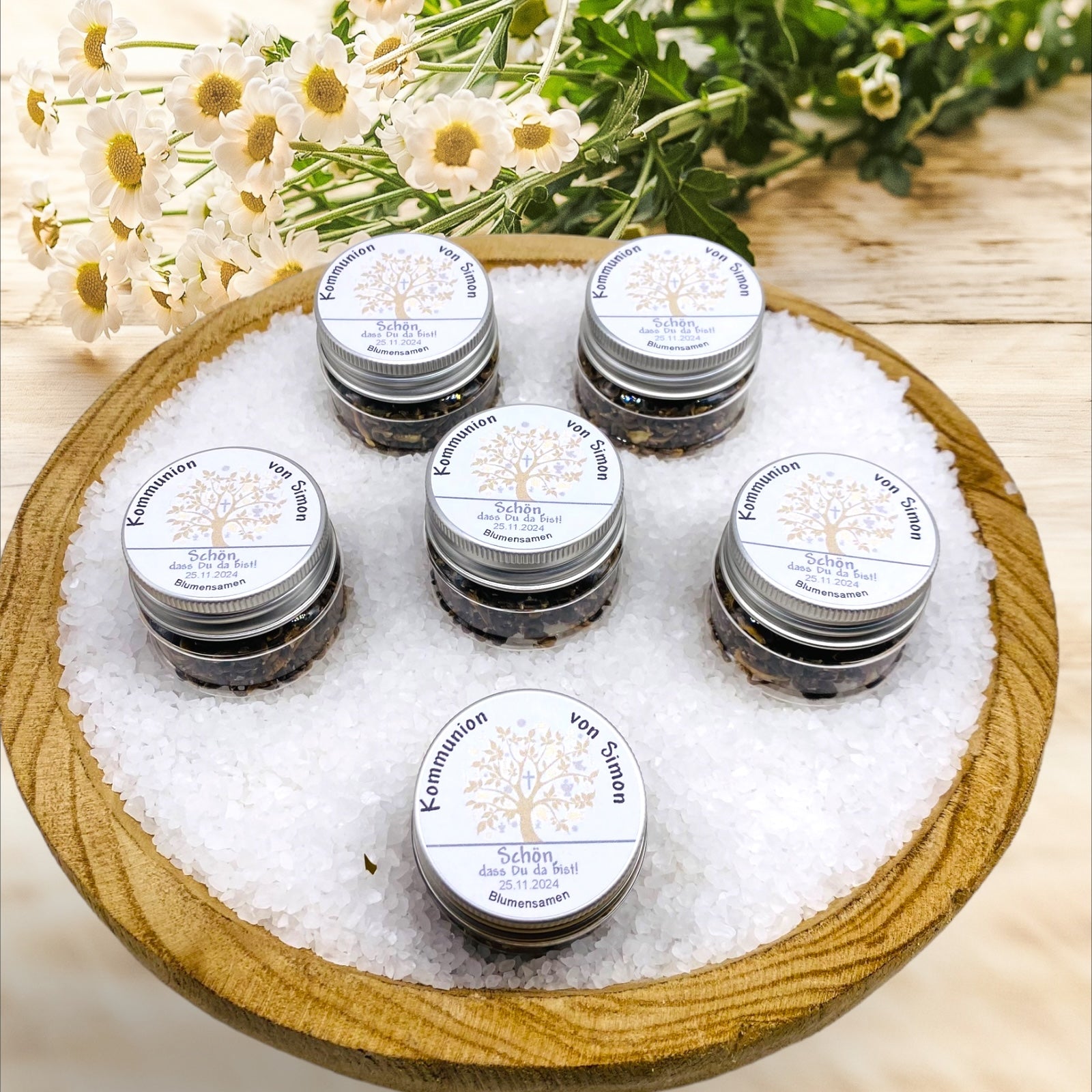 Machen Sie Ihre Feier unvergesslich und geben Sie Ihren Gästen etwas Einzigartiges. Unsere personalisierten Gastgeschenke vereinen Natur, Design und Individualität, um Ihre Konfirmation, Kommunion, Firmung oder Jugendweihe zu einem unvergesslichen Ereignis zu machen.