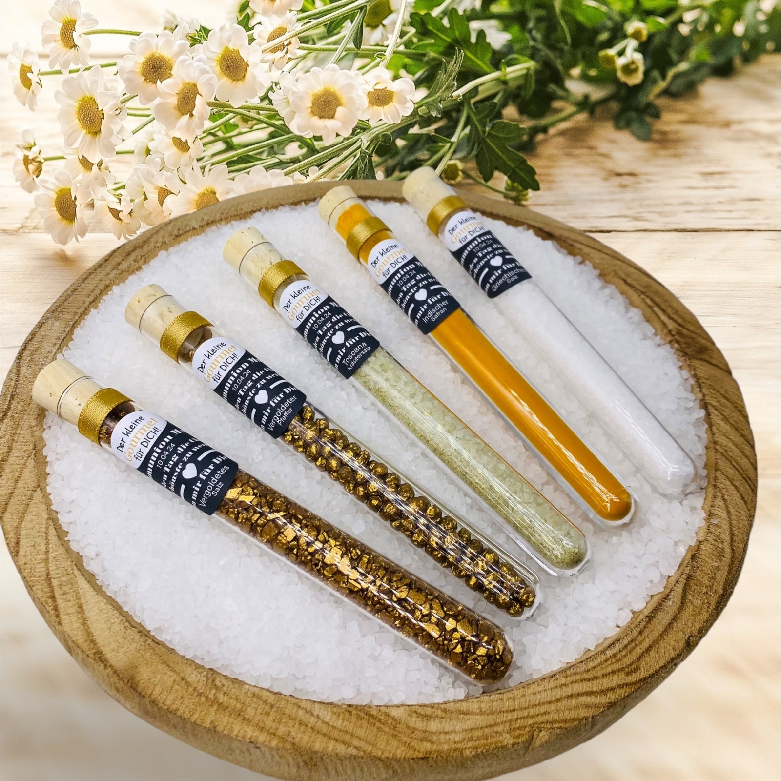 Feiern Sie die Kommunion/Konfirmation mit diesem charmanten Gastgeschenk – ein Reagenzglas voller Gewürze, Persönlichkeit und festlichem Flair.