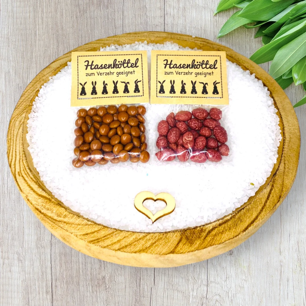 Jedes Kärtchen trägt die witzige Aufschrift "Hasenköttel zum Verzehr geeignet" – ein amüsantes Ostergeschenk für Familie, Freunde, Kollegen oder Nachbarn.