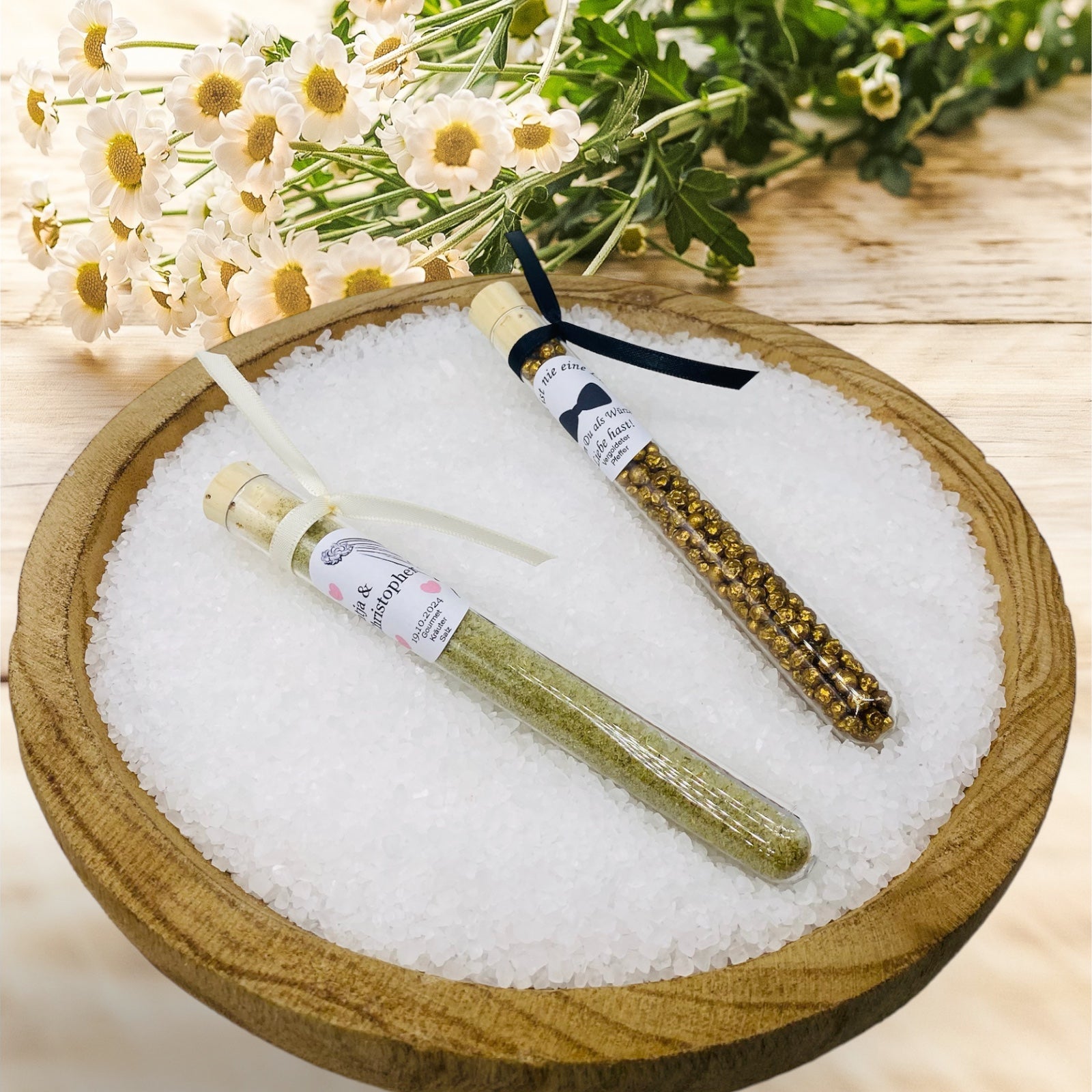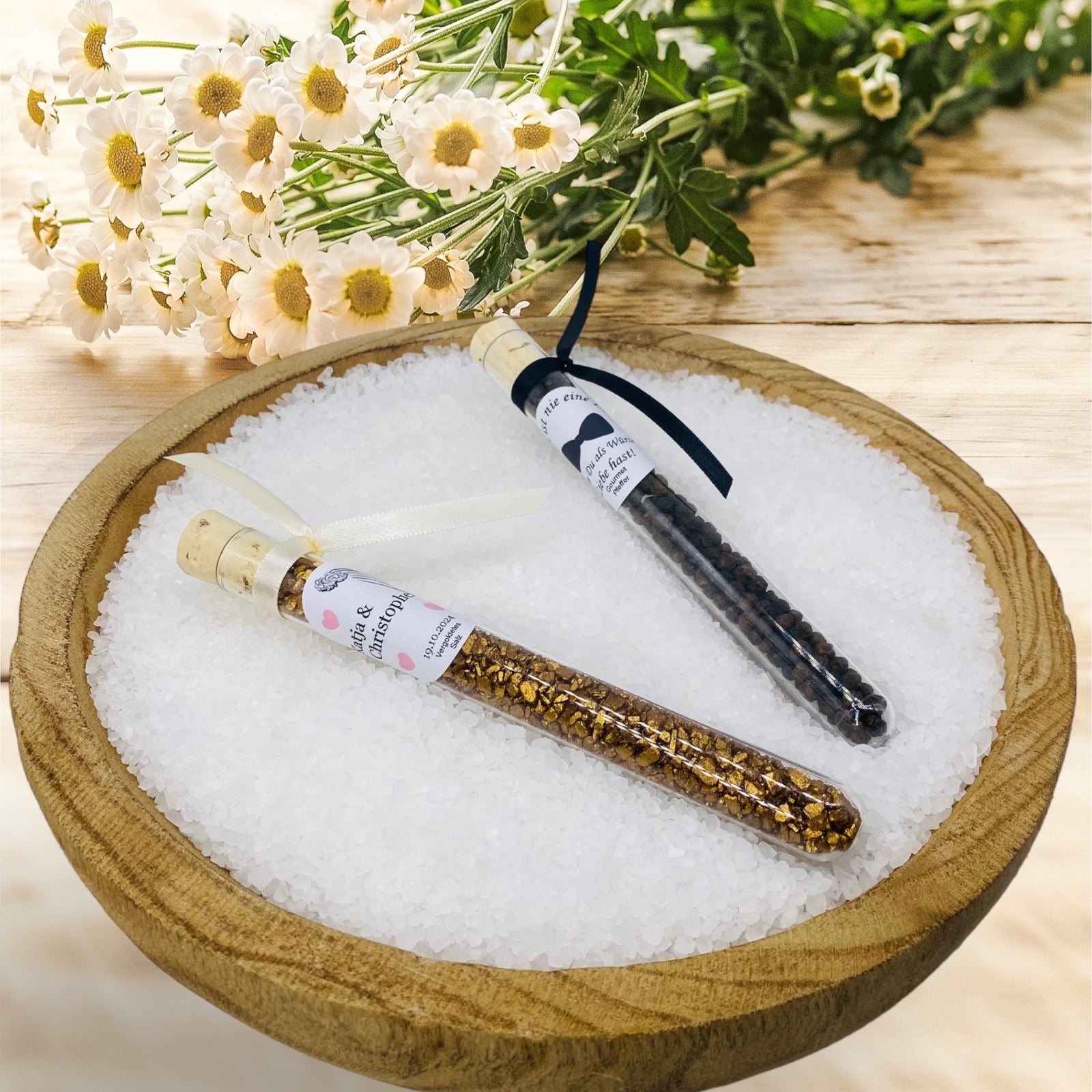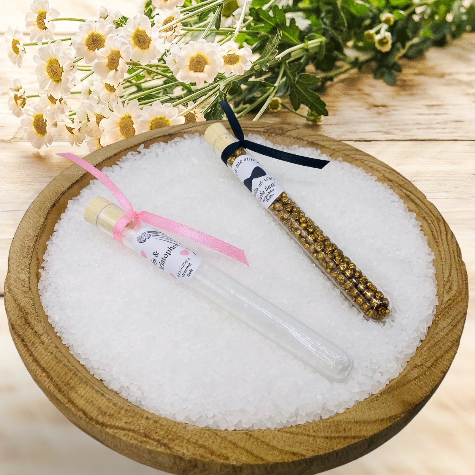 Salt and pepper as a guest gift for your classic celebration in an elegant test tube