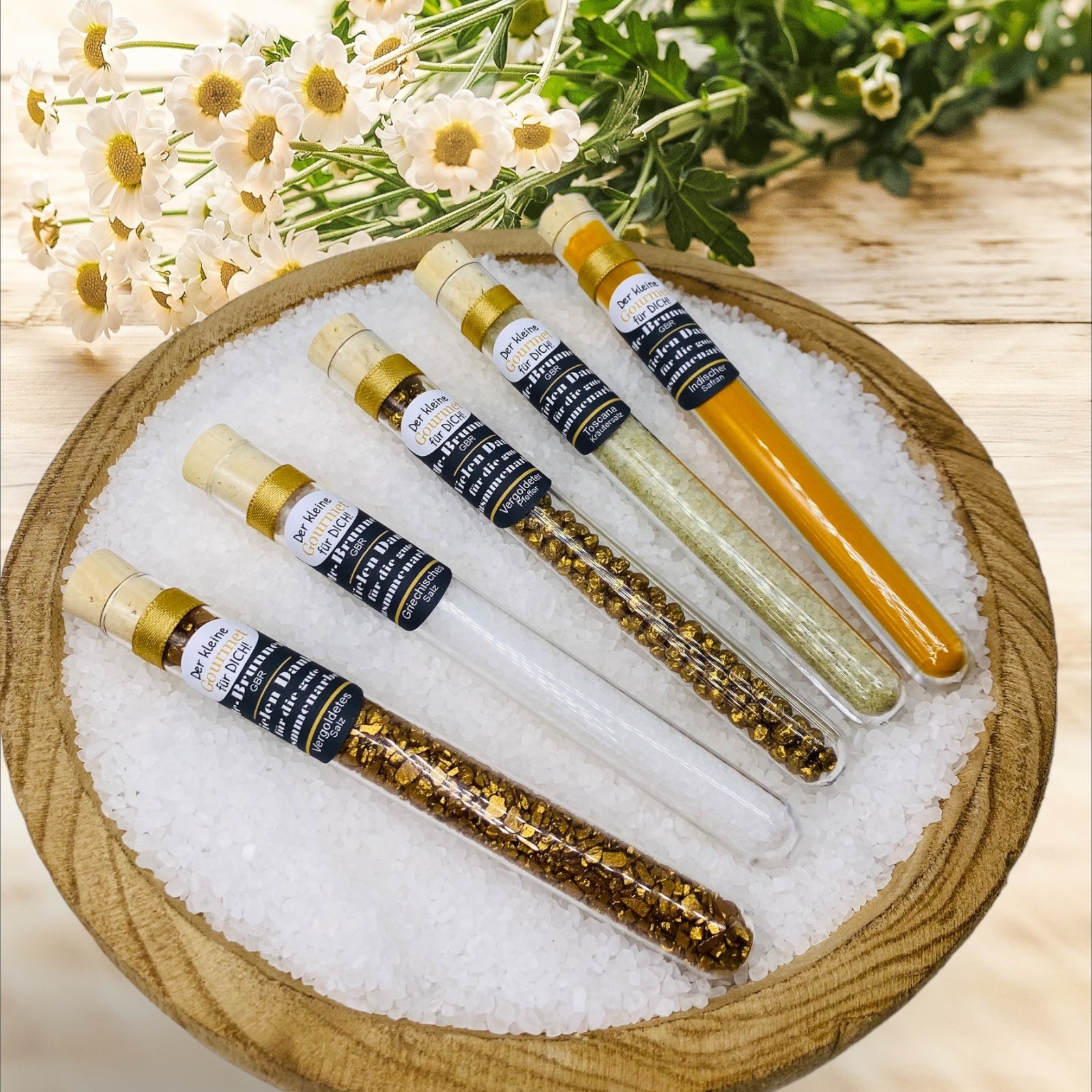Tauchen Sie ein in ein exklusives Geschmackserlebnis mit unserem einzigartigen Werbegeschenk Kundengeschenk, Messegeschenk, Mitarbeitergeschenk, einem Reagenzglas (160 × 16 mm) gefüllt mit erlesenen Gourmet-Gewürzen. Von vergoldetem Pfeffer und Salz bis hin zu toskanischen Kräutern, griechischem Salz und indischem Safran – jede Mischung ist sorgfältig ausgewählt für höchsten Genuss.