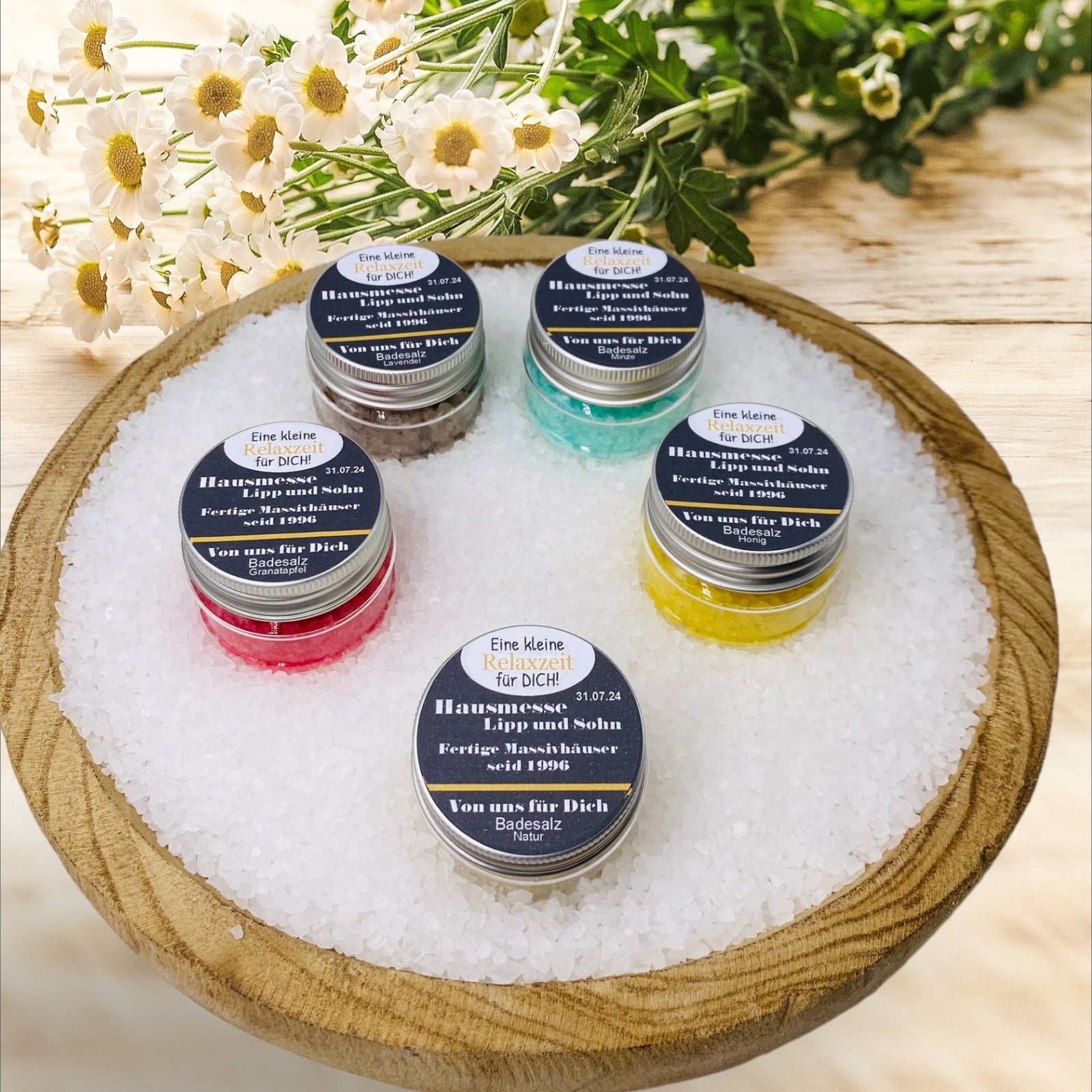 Entdecken Sie die Kunst des Schenkens mit unserem exklusiven Badesalz-Tiegel – das ideale kleine Geschenk für Kunden, Mitarbeiter oder als Messesouvenir!