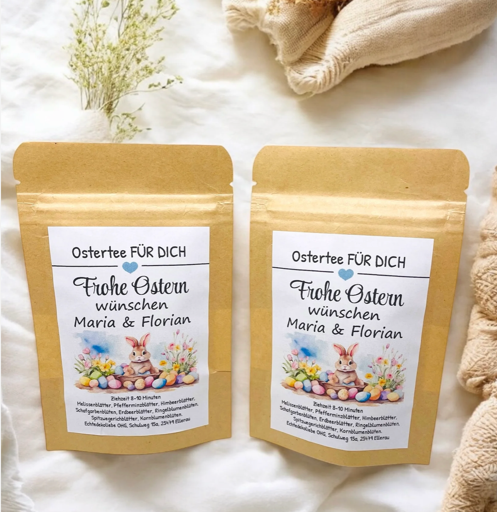 Auf der Suche nach einem kleinen, aber besonderen Ostergeschenk? Unsere liebevoll gestalteten Kraftpapiertüten mit Druckverschluss enthalten hochwertigen Ostertee und sind perfekt als Mitbringsel für Nachbarn, Kollegen, Freunde oder Mitarbeiter.